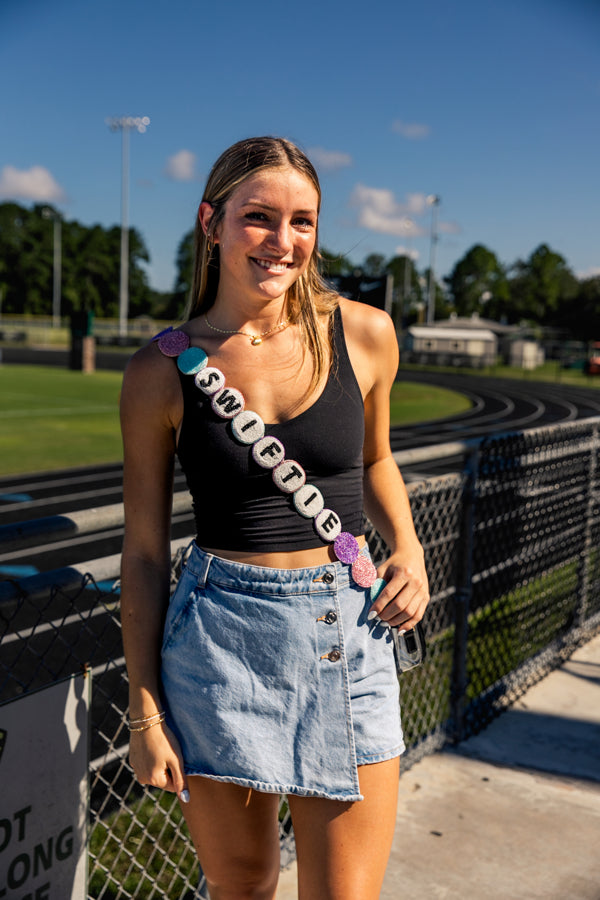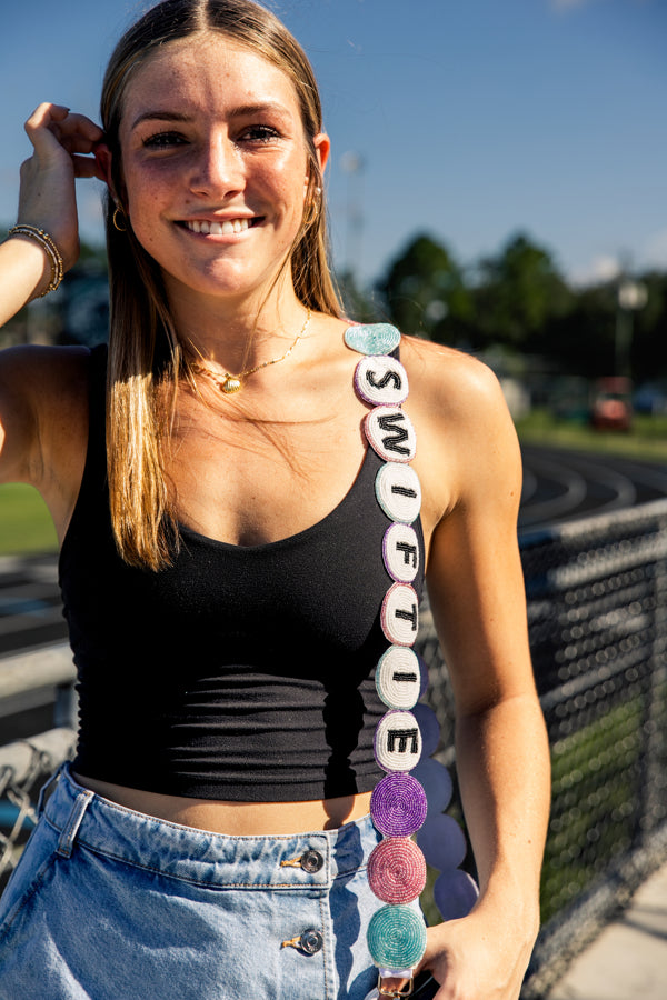 This purse strap was designed to look like the prettiest friendship bracelet!