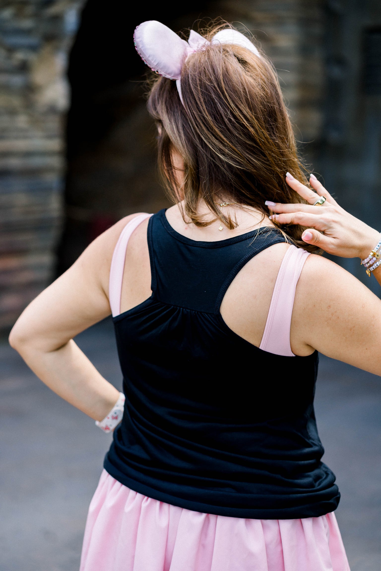 - Color: Black tank with pink embroidery
